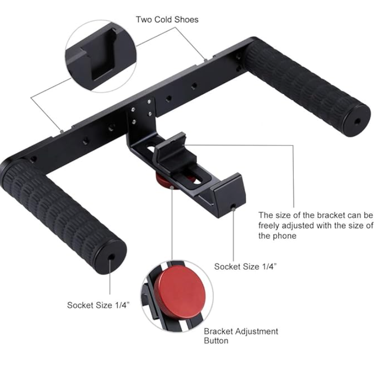 - Porta Teléfonos Ajustable: El soporte para teléfono es flexible y ajustable en dimensiones, permitiéndote fijar dispositivos de distintos tamaños de manera segura.
